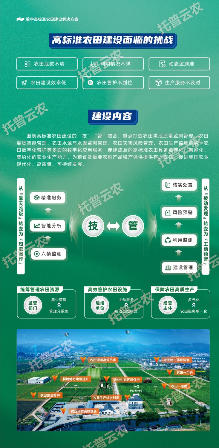 作為中國智慧農(nóng)業(yè)領(lǐng)域的先行者,浙江托普云農(nóng)科技股份有限公司(股票簡稱:托普云農(nóng),股票代碼:301556)始終立于行業(yè)一線,深入探索數(shù)智技術(shù)與農(nóng)業(yè)生產(chǎn)的融合應(yīng)用,以高標(biāo)準(zhǔn)農(nóng)田建設(shè)的“技”“管”融合為理念,以關(guān)鍵智能化場景打造為抓手,構(gòu)建數(shù)字化、智能化、集約化的高標(biāo)準(zhǔn)農(nóng)田(綠色農(nóng)田)建設(shè)解決方案。