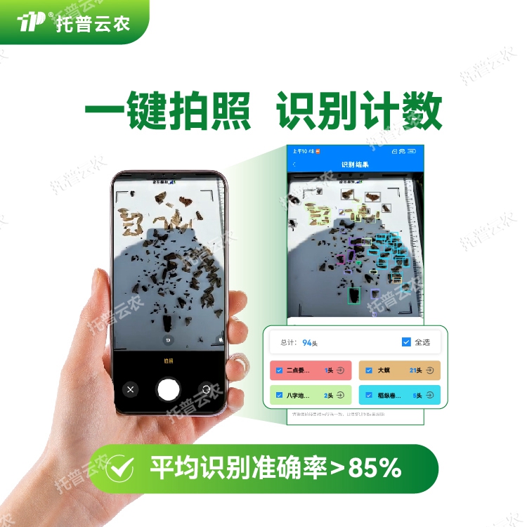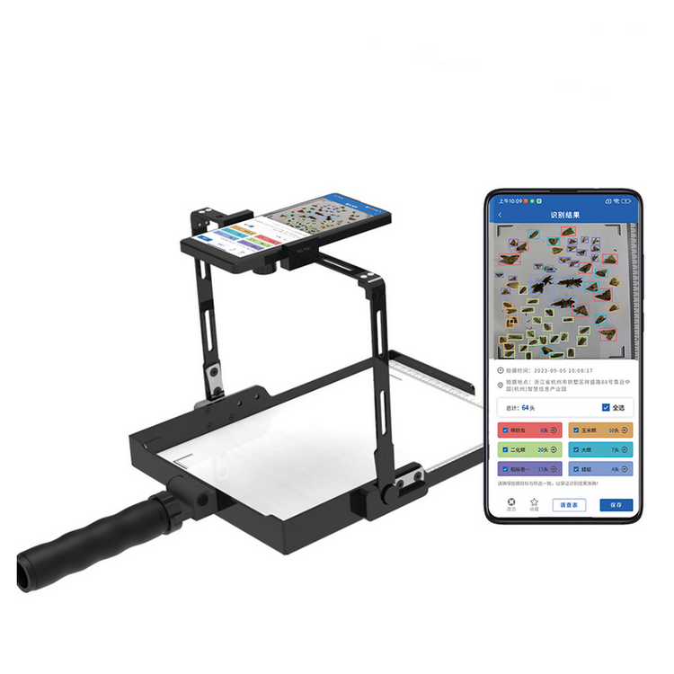便攜式害蟲采集識別系統(tǒng)是集害蟲樣本采集、圖像處理、智能識別和數(shù)據(jù)管理于一體的田間害蟲調(diào)查儀器!系統(tǒng)搭載人工智能圖像識別模型和配套小工具,配合專用App,能夠在線識別草地貪夜蛾、草地螟、稻縱卷葉螟、二化螟、玉米螟、斜紋夜蛾等十余種害蟲,平均識別準確率>85%。此外便攜式害蟲采集識別系統(tǒng)還可搭配不具識別功能的測報燈、殺蟲燈使用,解決其無法識別計數(shù)的痛點!