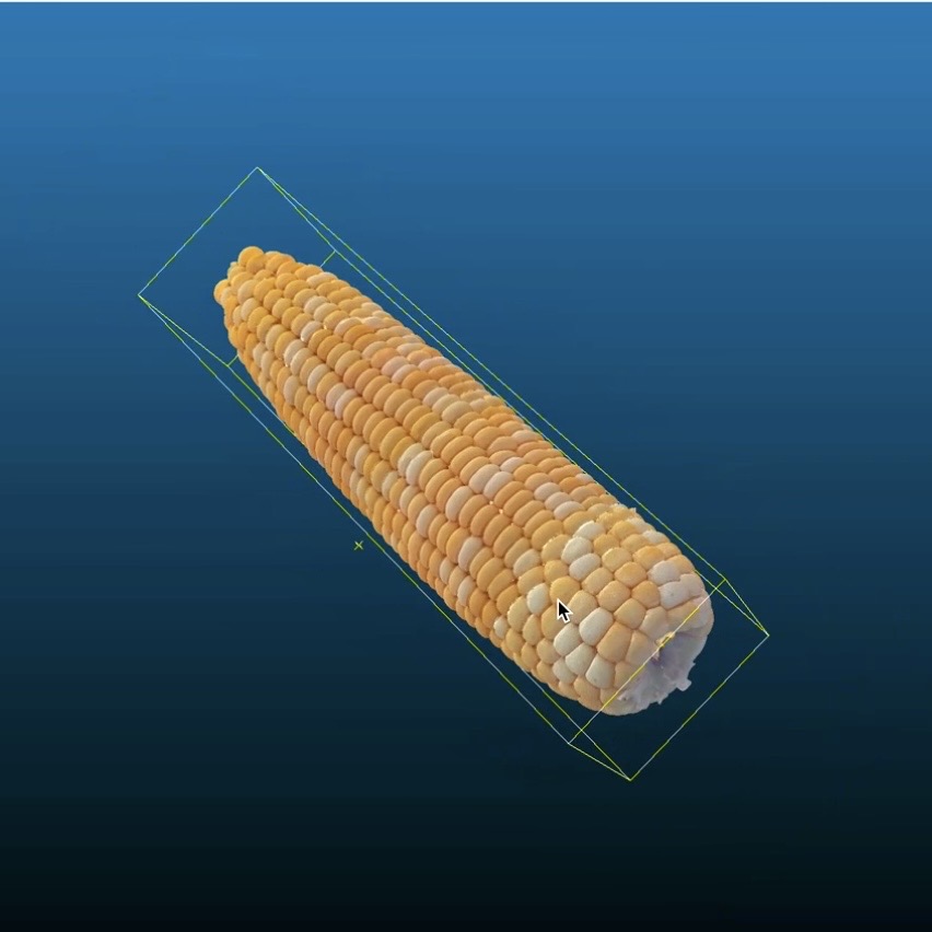 ①智能三維重建:高通量玉米果穗考種分析系統(tǒng)基于人工智能算法,通過多視角掃描,自動重建果穗三維點云模型,并智能提取形態(tài)、顏色、紋理等關(guān)鍵表型參數(shù)。