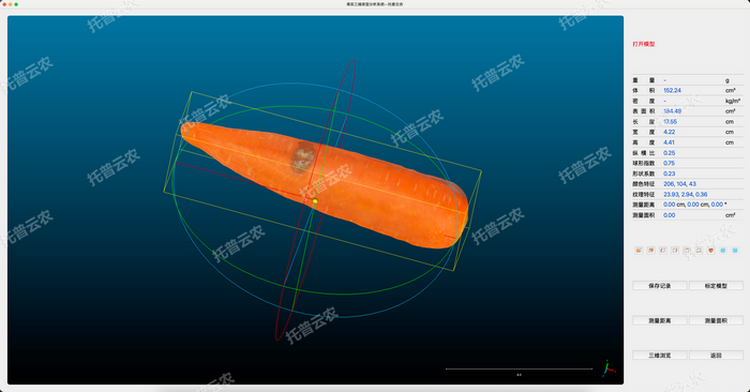 (1)內(nèi)置人工智能算法,基于三維點云重建“數(shù)字水果”,自動解析28項以上表型參數(shù),覆蓋: