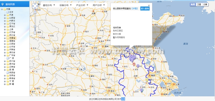 平臺(tái)將災(zāi)情按嚴(yán)重程度分為不同顏色,并在省級(jí)行政圖中以點(diǎn)的形式表示,只要一打開(kāi)平臺(tái)的行政區(qū)域圖,即可直觀顯示省內(nèi)各區(qū)域的墑情情況如何。