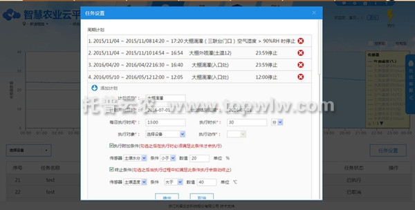 遠(yuǎn)程自動(dòng)控制水肥作業(yè),大棚內(nèi)風(fēng)機(jī)、遮陽(yáng)、側(cè)窗、濕簾、植物生長(zhǎng)燈等。用戶(hù)設(shè)定監(jiān)控條件后,可完全自動(dòng)化運(yùn)行,遠(yuǎn)程控制生產(chǎn)現(xiàn)場(chǎng)的各種農(nóng)用設(shè)施和農(nóng)機(jī)設(shè)備,快速實(shí)現(xiàn)溫室大棚、大田種植自動(dòng)化灌溉作業(yè)。